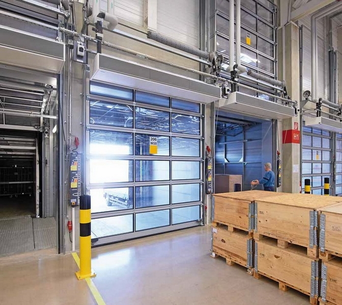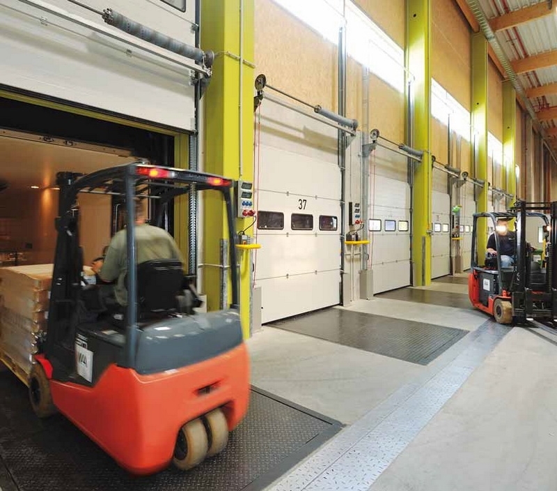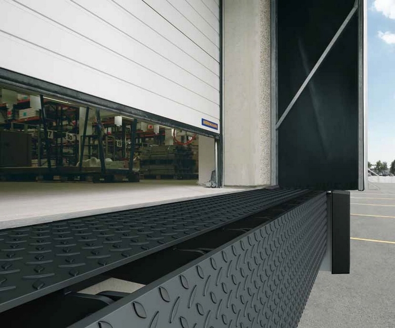 При данном энергосберегающем и выгодном по цене решении ворота опускаются вплоть до пола цеха и изолируют проем ворот. Механический перегрузочный мост устанавливается перед цехом и перекрывает при незначительной разнице в высоте пространство до погрузочной платформы грузового автомобиля. |