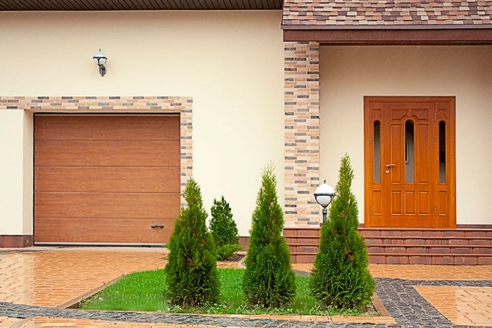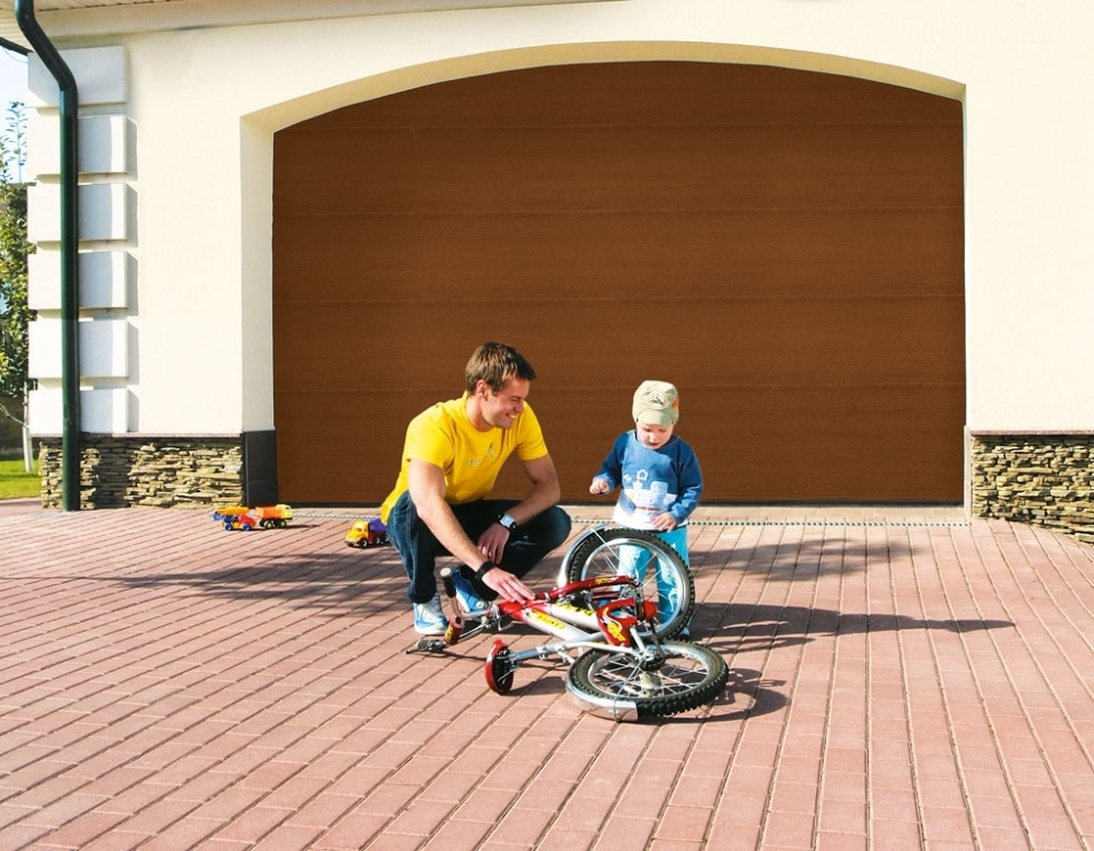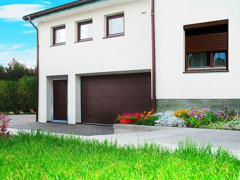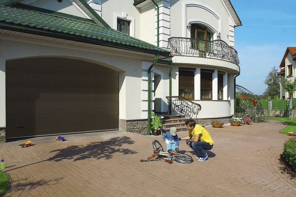 Благодаря различным вариантам рисунков (микроволна, горизонтальный гофр, филенка) секционные ворота идеально сочетаются с любым отделочным материалом.