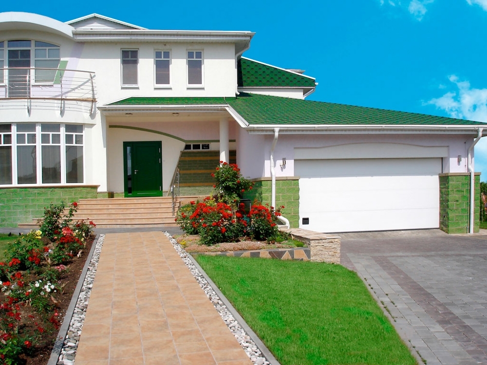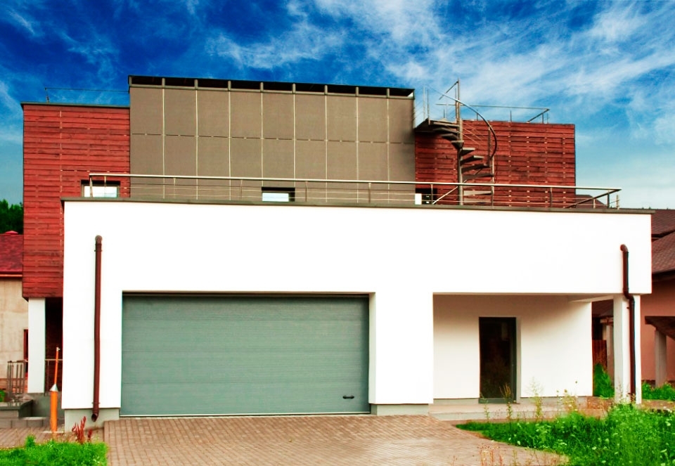 Секционные ворота «Алютех» в равной степени идеально подчеркнут архитектуру как современного дома в стиле hi-tech, так и коттеджа в классическом исполнении.