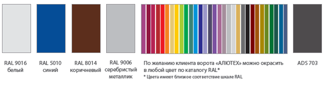 Ворота серии AluLine могут быть окрашены в любой цвет по каталогу RAL или в ADS 703.