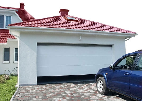 Если крыша выполнена под углом, идеально подойдут ворота наклонных типов монтажа