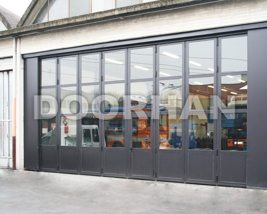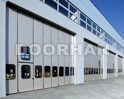 Конструкция складных ворот doorhan представляет из себя вертикально расположенные секции, которые надежно прикреплены друг к другу. При открытии секции складываются одна на другую в виде «гармошки», отъезжают или разъезжаются в разные стороны. Главной отличительной характеристикой складных ворот является возможность монтажа на проемы различных габаритов. При этом, здание может иметь как самое простое, так и сложнейшее строение. Складные ворота оптимально использовать для установки в ангарах, на заводах, складских помещениях больших размеров.