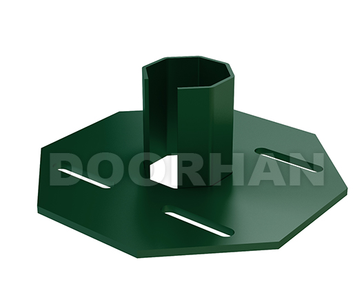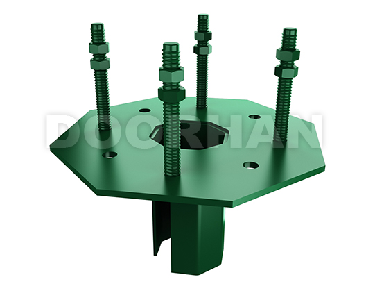 На конце столба расположен фланец, с помощью которого осуществляется крепление столба к опоре, находящейся в грунте. Фланец на основном столбе позволяет регулировать установку ограждений в плоскости вперед-назад. Для установки спирального барьера или колючей проволоки применяются столбы с переходными элементами для их крепления.